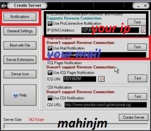 তারপর আপনার ip আড্রেস দিন । এরপর পাশে টেস্ট এর নিচের আইকনে ক্লিক করুন । যেনো prorat পিসির গোপন সব আপনার কাছে পাঠাতে পারে । এরপর আপনার মেইল আড্রেস দিন । যাতে আক্রান্ত পিসির তথ্য গুলো আপনার মেইল এ চলে আসে ।