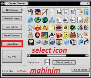 ৮ । এরপর server icon ট্যাব সিলেক্ট করুন । ফাইলের আইকন পরিবর্তনের জন্য । এরপর পছন্দ মত আইকন নিন ।