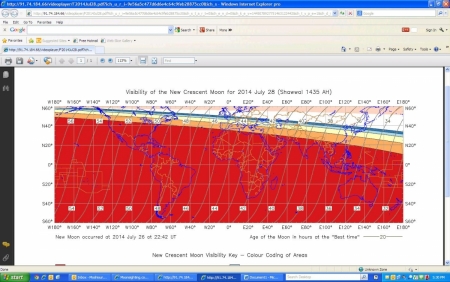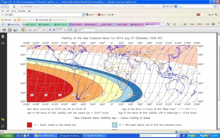 দেখুন আজ কোথায় চাদ দেখা যাবে>> নিচের ছবিতে দেখা যাইতেছে যে আজ চাদ আকাশে থাকলেও তা আমাদের দেশে দেখা যাবেনা... ২৮শে জুলাই পুরাই দেখাযাবে..