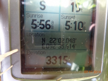 জি পিএস রিডিং - এ ৩৩১৫ ফুট পেয়েছিলাম । ( কেওক্রাডং ৩২৩০ ফুট পেয়েছিলাম)