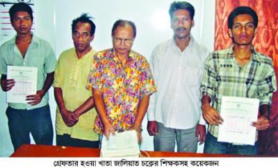 রাজশাহী শিক্ষা বোর্ডের ইংরেজি দ্বিতীয়পত্রের খাতা জালিয়াতির সময় পরীক্ষক ও দুই ছাত্রসহ ৫ জনকে গতকাল সকালে রাজশাহী মহানগর ডিবি পুলিশ বগুড়া শহরের সেউজগাড়ী এলাকা থেকে গ্রেফতার করেছে। এ সময় তাদের কাছ থেকে দু’টি ইংরেজি দ্বিতীয়পত্রের খাতা, দু’টি কলম ও ৫ হাজার টাকা উদ্ধার করে। গ্রেফতারকৃতরা হলো বগুড়ার সান্তাহারের শহীদ আহসানুল হক ডিগ্রি কলেজের ইংরেজি প্রভাষক মো. আবুল কালাম আজাদ, দালাল ইব্রাহীম, আলতাব ফটিক, বরেন্দ্র কলেজের ছাত্র আল আমিন ও হাসিবুর রহমান হাসান। গত রোববার দৈনিক আমার দেশ পত্রিকায় ‘নম্বর বাড়িয়ে পাসের হার ও গ্রেড বৃদ্ধি’ শিরোনামে খবর প্রকাশের পর রাজশাহী মহানগর ডিবি পুলিশ এ ব্যাপারে তত্পর হয়। ডিবি পুলিশের দুই কনস্টেবল পরীক্ষার্থী সেজে অভিনব কায়দায় জালিয়াতদের গ্রেফতার করে। এ নিয়ে রাজশাহীজুড়ে চাঞ্চল্যের সৃষ্টি হয়েছে। এ ঘটনায় রাজশাহী শিক্ষা বোর্ড কর্তৃপক্ষ তাত্ক্ষণিকভাবে ওই শিক্ষকের পরীক্ষকশিপ বাতিল এবং তার কাছে থাকা সব খাতা ক্লোজ করার সিদ্ধান্ত নিয়েছে।