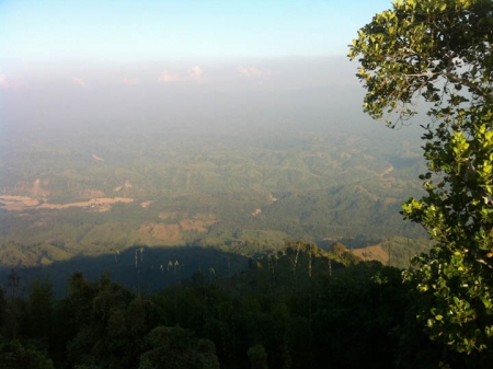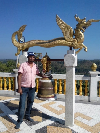 সময় ৩০ মিনিট। বাস থেকে নেমে আমরা ছুটলাম স্বর্ণ মন্দিরের উদ্দেশ্যে। প্রায় ২ থেকে ৩ শত ফুট পাহার বেয়ে উঠে হাপাতে হাপাতে অবস্থা খারাপ। টিকিট মাত্র ৩০ টাকা ঝটপট টিকিট নিয়ে ভিতরে ঢুকলাম। ওহ্ মন ভরে গেলো। পাহারের চুড়ায় সোনা রঙ্গের স্বর্ণ মন্দির। সমস্তটা্ই সোনালী রঙ্গের। সোনালী ড্রাগন, মূর্তি প্রভৃতি নিচে চরাচর। অনেক ছবি তুললাম। ধীরে ধীরে নিচে নেমে এলাম আমরা। প্রচন্ড ক্লান্ত হয়ে পড়েছিলাম। ডাব ছিলো। কিনলাম দুটো। খেলাম পেট পুরে। আহ্ কি শান্তি। গাড়ি আমাদের চললো বান্দরবান শহরের দিকে। মিনিট দশের চলার পরে গাড়ি বান্দরবান শহরে পৌঁছে গেলো। গাড়ি থেকে নেমে এবার চাঁদের গাড়ির খোঁজ শুরু হলো। আরে আমরা যাবো নীলগিরী প্রায় ৩ হাজার ফুট উপরে সেখানে তো আমাদের এই বড় বাস যেতে পারবে না। নীলগিরী যাবার জন্য চাঁদের গাড়িতে চেপে যেত হয়। প্রতি গাড়ির ভাড়া মিটলো ৪২০০ টাকায়। প্রতি গাড়িতে চড়তে পারবে ১৪ জন। দুই গাড়ি নিলাম আমরা। দুপুর সারে বারোটায় আমাদের চাঁদের গাড়ি চলতে শুরু করলো। আমি সকাল থেকেই না খেয়ে ছিলাম। বমির হবার ভয় ছিলো। চাঁদের গাড়ির রাইড ছিলো রোমাঞ্চকর। অনেকটা রোলার কোষ্টারে চড়ার মতো। ডানে বামে অসংখ্য পাহাড় আর ঘন ঘন বাঁক। আমরা উঠছি তো উঠছিই। অন্যান্য পাহারগুলো এবার উপর থেকে দেখতে পাচ্ছিলাম। বাড়িঘর মানুষজন তো দূরের কথা পাহারগুলোই ছোট ছোট দেখাচ্ছিলো। মাঝে মাঝে পাহারের মাঝে নীল রঙ্গের নদী দেখতে পাচ্ছিলাম। চোখ সরাতে পারছিলাম না। কি দেখছি ! পৃথিবী কতো সুন্দর। মহান সৃষ্টিকর্তা আমাদেরকে এমন সুন্দর একটা যায়গায় জন্ম দিয়েছেন বলে মনে মনে তাকে ধন্যবাদ জানালাম। ঘন্টা দেড়েক পরে গাড়ি থামলো। আমরা এসে গেছি চিম্বুক পাহারে। রাস্তা এমনিতেই পাহারের উপরে ছিলো তার পরেও চিম্বুকের সর্বোচ্চ শিখরে উঠতে চাইলাম। আমাদের কয়েকটি ছোট ভাই রাস্তা ছাড়াই পাহারের গা বেয়ে উঠতে শুরু করলো। আমরা রাস্তা বেয়ে উঠেছি। চুড়ায় যেয়ে দেখি সবকটা হাপাচ্ছে। নিচের দিকে তাকিয়ে বুঝলাম কারণটা কি? নিচ থেকে চুড়াটা খুব বেশি উঁচু দেখায়নি। কিন্তু উপর থেকে বুঝলাম বেশ উঁচু প্রায় ২ শত ফুট হবে। ওদের দেখে এক বড় ভাইও ঐ পথে উঠেছে। আমাকে দেখে বললো, ভাই খুব বাঁচা বেঁচে গেছি। মধ্য পাহারে উঠে খুব কষ্ট হচ্ছিলো। না পারি উঠতে না পারি নামতে। কিযে অবস্থা। আমি তাকে বারণ করে বললাম, পাগল হয়েছেন? সাথে সাথে থাকুন। বেশি উত্তেজিত হয়ে শেষে আনন্দটা্ই মাটি করবেন দেখছি। তিনি বুঝলেন আর সেই যে আমার সঙ্গ নিলেন আর সঙ্গ ছাড়া হননি। চিম্বুকের চুড়ায় দেখলাম বাংলাদেশ তার ও টেলিফোন বোর্ডের একটা স্টেশন রয়েছে। সেখানে কিছু বাঙ্গালী অফিসার বাস করেন। আমাদের দেখে তারা জিজ্ঞেস করলেন কোথা থেকে এসেছি। আমরা বল