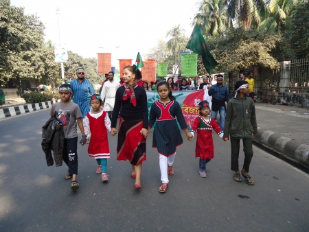 আজ ১৬ই ডিসেম্বর না হলে মনে হয় আমাকে ক্রেন দিয়েও সকাল ছয়টায় ঘুম থেকে টেনে তোলা যেত না। এমনিতেই বিজয়ের র্যালী তার ওপর সামহ্যোয়ারইন ব্লগের সুতরাং আমাকে উঠতেই হল। ঘুম থেকে উঠে খারাপ লাগেনি। উত্তরা থেকে শাহবাগের যাত্রা আজ আমার নতুন নয় কিন্তু আজকের চারপাশ ভিন্ন ছিল। ভোর থেকেই মানুষ যেন লাল সবুজে চারপাশ রাঙিয়ে দিয়েছিল।