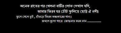 কি মনে করে খুব রাতে অমাবশ্যা নামল আমার বারান্দায়। ঝড়ে সব ভেঙ্গে গেল। জেনেছিলাম যখন, তুমি আর নেই সে তুমি! শুনেছিলাম যখন, এ তুমি এখন থেকে অপরিচিতা কারো একান্ত ব্যাক্তিগত সম্পত্তি! তুমি ফিরেছিলে . . . তবে এই যে তোমার একদম নির্ঝনঝাট হারান বিজ্ঞপ্তি , এটা পৌঁছে দিতে।