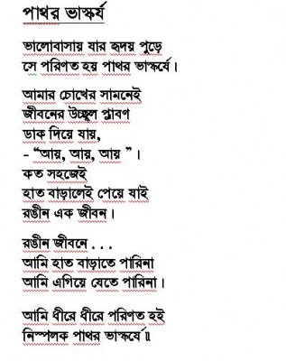 পরীক্ষণ করছি কিভাবে ব্লগে একটি কবিতা লিখা যায়, কপি পেষ্ট হচ্ছে না, ওয়ার্ড ডকুমেন্ট থেকে। আসলে আমার মনে হয় একটু সাহায্য দরকার, অভিজ্ঞ কারো।