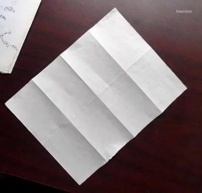প্রথমে একটি ছয় ইঞ্চি বাই আট ইঞ্চি নিউজপ্রিন্ট কাগজ নিন। নিচের ছবির মত ভাজ করে নিন(পরবর্তীতে কাটতে সুবিধা হবে)।