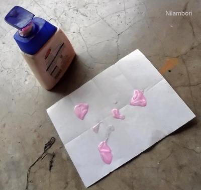 এবার হ্যান্ডওয়াশ লিকুইড টা আলতো করে পুরো কাগজে মেখে দিন।