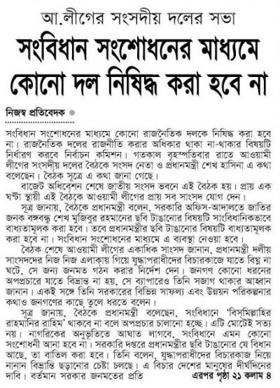 কালের কণ্ঠ / ২৩ শে জুলাই , ২০১০ / শেখ হাসিনার বক্তব্য জামায়াত নিষিদ্ধকরণ বিষয়ে