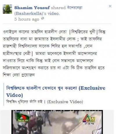 বিশ্বজিৎ খুনি ওবাইদুল কাদের তাহসিন, ছাত্রলীগ ভেকধারী শিবির নাতো!!!!!!!
