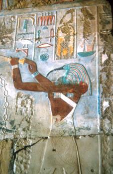 আমুন- আমুন শব্দের অর্থ অদৃশ্যমান। তার প্রতিকৃতি হল মাথায় লম্বা দুই পালক সমৃদ্ধ টুপি এবং হাতে দন্ড নেওয়া একজন পুরুষের। তার প্রিয় হল ভেড়া এবং রাজহাস যারা পুরুষত্বের চিহ্ন হিসেবে বিবেচিত হয়। মিশরের মধ্যম রাজবংশের যুগে তাকে “রা” এর সাথে একসাথে “আমুন-রা” হিসেবে পূজা করা হত। তার উপসনার স্থল ছিল থিবীস(এখনকার লুক্সর) এ । অস্টাদশ রাজবংশের যুগে আমুন সর্বশ্রেষ্ঠ দেবতা হিসেবে পুজিত হন। দেবতাদের রাজা হিসেবে পূজনীয় আমুনের সুবিশাল মন্দির “ কারনক” এ অবস্থিত।