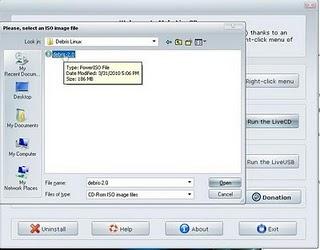 তার পর Run The Live CD অথবা Run The Live USB Click করে নিচের মত করে আপনার iso File টি নির্বাচন করুন
