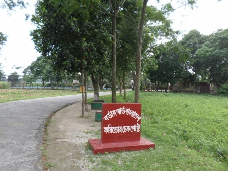 তিন বিঘা করিডোর থেকে ১০০ মিটার দূরে নামফলকে লেখা পড়ে মনে আনন্দের একটা শিহরণ বয়ে গেল।খানিকটা এগুতেই দেখলাম বামপাশে করিডোরের বাইরে বিজিবির তিনবিঘা করিডোর চেকপোষ্ট।