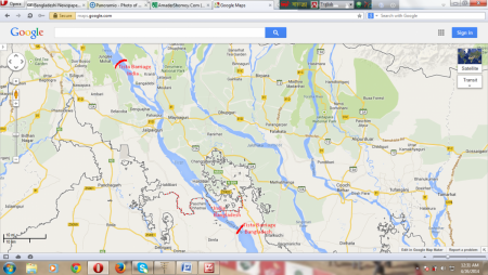 এক নদীর উপর সামান্য ব্যবধানে দুইটা ব্যারেজ। উপরে ভারতের তিস্তা ব্যারেজ,নীচে বাংলাদেশের।