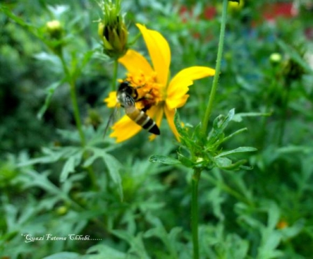 ১। কসমস থেকে মধু সংগ্রহ করছে মৌমাছিটি। ছবিটি দ্রুততার সাথে ক্লিক তাই অস্পষ্ট......