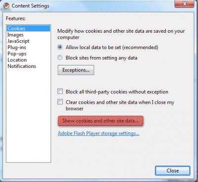 ৩. নিচের মত উইন্ডো ওপেন হলে Show cookies and other site data.. বাটনে ক্লিক করুণ।