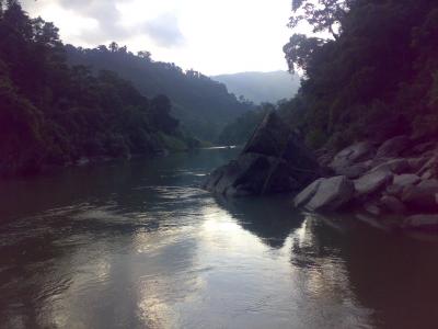 সিরাজ ভাই এবং আমার মনের আহাজারি নদীর পাড়ে পাহাড়ী ঘরে থাকার ইচ্ছা। নদীর পাড়ে এক ঘর দেখে এই ইচ্ছা যেন আকাশ ছুয়ে গেল। একঘন্টা পর বড়পাথরে নৌকা ভিড়ল। সরু পাহাড়ী নদীর বুকে বড় বড় পাথর দুই পাশে উচু পাহাড়। এক পাহাড়ের আবার খাড়া কিয়দাংশ নেই, অথা'ৎ ঐ পাহাড়ের শক্ত মাটি দূর থেকেই দেখা যাচ্ছে। বুঝাই যাচ্ছিল যে, কোন এক অতীত কালে ঐ পাহাড় ভরাট ছিল এবং ঐ পাহাড়ের কিছু অংশ নদীর বুকে পড়েছিল, সেই ভেঙে পড়া অংশ কালক্রমে শক্তপাথরে রুপ নিয়েছে। মাঝি বলল এরমধ্য বড় পাথর দুইটি