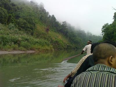 ফিরতি যাত্রা আধো আলো-অন্ধকারে এবং তেলবিহীন চান্দের গাড়ীঃ যেহেতু ফিরে যাওয়ার তাড়া ছিল, তাই রাত্রি সাড়ে চারটায় সবাই উঠে যাই। তারপর ঘাটে গিয়ে যখন দেখলাম পুরো অন্ধকার- কিছুক্ষন অপেক্ষা করলাম। আধাঘন্টা পর আলো ফুটতে শুরু করল। সেই আধো আলো-আধো অন্ধকারে আমাদের ফিরতি যাত্রা শুরু হল উদ্দেশ্য থানচিতে গিয়ে বাস ধরব। পাহাড়ী নদীর বুকে ভোর হওয়া এবং তার মধ্য নৌকায় যাত্রা এই যেন অন্যরকম সৌন্দ'য- ঠিক ভাষায় প্রকাশ করা অসম্ভব।