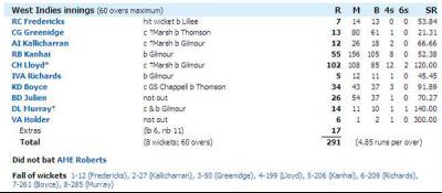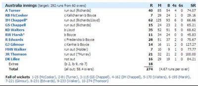 ২৯২ এর টার্গেট, তখনকার সময়ে চেজ করার জন্য প্রায় অসম্ভব। তবুও টার্নার-চ্যাপেল ২য় উইকেটে আশার সঞ্চার করেন। এরপর ব্যাটিং-এ ব্যর্থ, প্রাণ-চঞ্চল, যৌবনদীপ্ত রিচার্ডস দুটো সরাসরি থ্রো-তে টার্নার ও গ্রেগ চ্যাপেলকে রান আউট করেন।