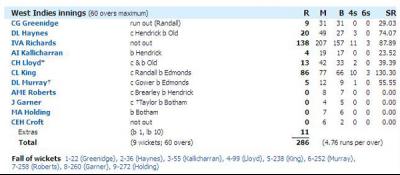 ২৩৮ রানের মাথায় অপূর্ব ইনিংস শেষ করে কিং বিদায় নিলেও রিচার্ডস সেদিন ছিলেন অজেয়।