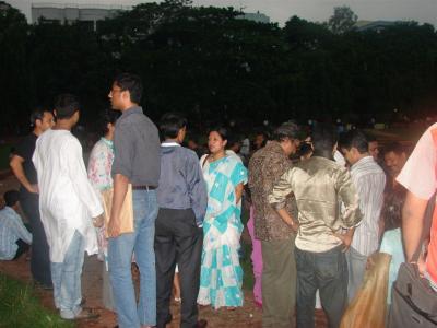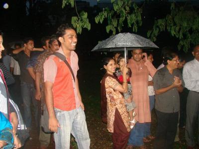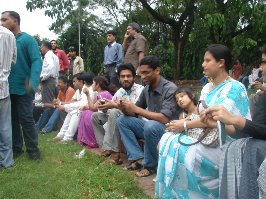 কিন্তু শুক্রবার দুপুরের পর থেকেই আকাশে কালো মেঘের ঘনঘটা আর সাথে আমাদের মনে আড্ডা মিস হওয়ার আশংকা। সাড়ে তিনটা নাগাদ বিড়াল কুকুর বৃষ্টি, ভাবলাম আর বোধ হয় সম্ভব না। ফোন করলাম উদ্যোক্তা রাতমজুরকে। বললেন তিনি তখন ও অফিসে এবং আডআয হাজির না হলে পিঠের ছাল থাকবে না উদ্যোক্তাদের। এরপর ফোন পেলাম নতুন ব্লগার সবার প্রিয় এর ফোন সে আসতে চায় কিন্তু বৃষ্টিতে ভয় পাচ্ছে তাকে সরাসরি জানানো হলো বৃষ্টি হোক আর যাই হোক আড্ডা হবে। তার ফোন রাখতে না রাখতেই ব্লগের ল্যাঞ্জাছাড়া বান্দর 'কাব্য' এর ফোন পেলাম, সে বৃষ্টির দোহাই দিয়ে আড্ডা স্কিপ করতে চায়, তাকে আসার জন্য বিশেষ ভাবে আমন্ত্রণ জানানো হলো। এরপর পেলাম গোয়েবলস এর ফোন। সে আসতে আগ্রহ প্রকাশ করল এবং তাকে আসার আমন্ত্রণ ও জানানো হলো। সাড়ে চারটার দিকে গুড়িগুড়ি বৃষ্টি নিয়ে রওনা হলাম রবীন্দ্রসরোবরের দিকে। পৌছে দেখি আমার আগেই পৌছেছেন অনেকেই। যাদের মধ্যে শ্রাবণ সন্ধ্যা আপু ও স্বর্গের প্রজাপতি (আপুর মেয়ে জাফনা), অমাবশ্যার চাদ এবং ভোরের তারা, শামীম (খাদ্য মন্ত্রী), রাতমজুর (স্বীকৃত চাঁদাবাজ), মিল্টন ভাই (৩৫ বছর বয়সে যিনি স্থির) সহ আর ও অনেকে।