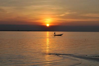 ০২. পাটুরিয়া পাড় থেকে পদ্মা নদী। একজন মাঝি আর একটা নৌকা। কি সুন্দর বেয়ে যাচ্ছে।