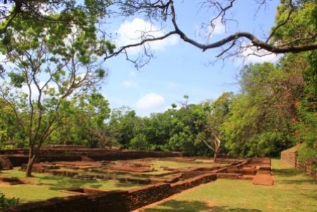 মূল প্রবেশ পথ থেকে প্রায় আধা কিলোমিটার পথ পাড়ি দিয়ে পাহাড়ের পায়ের তলায় এসে পৌঁছাতেই পনের কুড়ি মিনিট সময় লেগে যায়। পথের দু পাশের পুরো এলাকায় গাছপালার ফাঁকে ফাঁকে পাহাড়পুর অথবা ময়মাতি বৌদ্ধ বিহারের স্থাপনার মতো অসংখ্য প্রতœতাত্ত্বিক নিদর্শন ছড়িয়ে ছিটিয়ে আছে। সম্ভবত পাহাড় শীর্ষে রাজা কশ্যপের প্রাসাদের প্রবেশের আগে নিশ্ছিদ্র নিরাপত্তা গড়ে তুলতে প্রহরা চৌকি এবং সৈন্য সামন্তের সার্বক্ষণিক অবস্থানের জন্যে গড়ে তোলা হয়েছিল এইসব স্থাপনা। রাজা এবং রাজ পরিবারের আবাসস্থল হলেও এটি যে প্রকারান্তরে একটি দুর্গ, তাতে কোনো সন্দেহ নেই। সিগিরিয়ার প্রাসাদ চত্বরে প্রবেশের পরপরই পথের দুপাশে গভীর একটি খালের উপস্থিতি সেই ধারণাকেই আরও দৃঢ় করে। খালের পানিতে নামা যে আজকের যুগেও নিরাপদ নয় পর্যটকদের তা জানাতে খাল পাড়ের এখানে সেখানে ‘কুমির হইতে সাবধান’ জাতীয় বাণী লেখা ফলক শোভা পাচ্ছে। রাজা কশ্যপ নিজেই হয়তো খাল কেটে কুমির এনেছিলেন। কিন্তু দেড় হাজার বছর আগের সেই কুমির কি এখনো টিকে আছে!