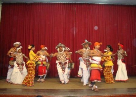 শঙ্খনাদ এবং ঢোলের সম্মিলিত স্বাগত সম্ভাষণের মধ্যদিয়ে অনুষ্ঠান শুরু হলো। স্বর্গীয় আশীর্বাদ কামনায় পরবর্তী পরিবেশনা ছিল ‘পূজানৃত্য’। এরপর এক এক করে দেখা হলো ময়ূর নৃত্য এবং গ্রামের মেয়েদের পরিবেশিত লোক নৃত্যের মতো অনেকটা পরিচিত ধারার নাচের পরিবেশনা। খাজনার চেয়ে বাজনা বেশি বলে যে কথাটা আমাদের দেশে চালু আছে সেটা শ্রীলঙ্কার নাচের অনুষ্ঠানে এসে বেশ উপলব্ধি করা যায়। এখানে নাচের চেয়ে বাজনা বেশি এবং বাজনার চেয়েও বেশি পোশাকের বাহার। দক্ষিণ শ্রীলঙ্কার দানব নৃত্যে পোশাক পরিচ্ছদের আড়ম্বর এবং অলঙ্কারের ঝলক, বাদ্যযন্ত্রের ধুন্ধুমার আওয়াজ এবং শিল্পীদের লম্ফঝম্প মিলিয়ে মিনিট পাঁচ সাতেক মঞ্চে একটা প্রলয়ঙ্করী ঝড় বয়ে গেল। সম্ভবত একেই বলে তাণ্ডব নৃত্য!