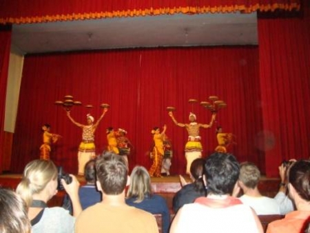 আমরা লেকের পাড় ঘেষে শহরের মাঝ দিয়ে পাহাড়ের শরীর বেয়ে বেশ খানিকটা উপরে উঠে যেখানে থামলাম সেটি ক্যান্ডির ওয়াইএমবিএ হল অর্থাৎ ইয়ং মেনস বুদ্ধিস্ট এ্যাসোসিয়েশান মিলনায়তন। এখানে প্রতি সন্ধ্যায় আয়োজিত হয় ‘কালচারাল শো’। প্রবেশপত্রের খোঁজ নিয়ে দেখা গেল এখানে কোনো টিকেট কাউন্টার নেই এবং প্রবেশ পথে টিকেট দেখিয়ে ঢোকারও কোনো বাধ্য বাধকতা নেই। অডিটোরিয়ামে ঢুকে পড়ার পরে প্রবেশপথের পাশে চেয়ার টেবিল নিয়ে বসে থাকা ‘সাংস্কৃতিক কর্মী’র কাছে থেকে জনপ্রতি ৫০০ রূপি দিয়ে কেউ একজন টিকেট নিয়ে এলেই হলো। অনুষ্ঠান শুরু হবে সন্ধ্যা সাড়ে ছয়টায়, আমরা একটু আগেই পৌঁছে গেছি। তারপরেও দেখা গেল প্রথম তিন চার সারি পূর্ণ হয়ে গেছে। শেষপর্যন্ত মিলনায়তন পূর্ণ না হলেও দর্শক সংখ্যা সাড়ে তিনশ’র মতো হয়েছিল বলে মনে হয়। আমাদের দলের আটজন এবং আরও ডজন খানেক উপমহাদেশীয় বাদামি রঙের মানুষ বাদ দিলে আর সকলেই পশ্চিমের সাদা চামড়া অথবা পূর্বের নাকবোঁচা চোখছোট মঙ্গোলিয় জাতিগোষ্ঠির মানুষ।