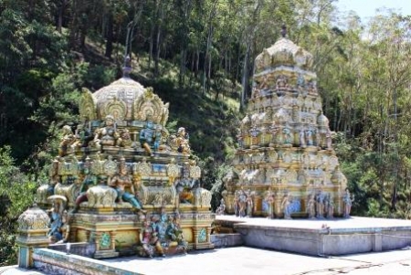 কারুকার্যখচিত ছোট্ট মন্দিরটিতে বিগ্রহ বলতে রয়েছে কাল পাথরে তৈরি রাম সীতা লক্ষণ এবং হনুমানের মূর্তি। পেছনের গাছপালা ঘেরা পাহাড় থেকে বিপুল বেগে নেমে এসেছে সীতা ঝর্না নামের পাহাড়ি জলপ্রবাহ। ঝর্নার মুখে ছড়ানো বিশাল বিশাল প্রস্তর খ-ের কোনো কোনোটিতে নাকি এখনো হনুমানের পায়ের ছাপ দেখতে পাওয়া যায়। আমরা অবশ্য হনুমানের পদচিহ্ন খুঁজে বের করার চেষ্টা না করে ঝর্নার সামনে পাথরের চাঁইয়ের উপর দাঁড়িয়ে এবং বসে ছবি তোলাটা বেশি যুক্তিযুক্ত মনে করেছিলাম। ক্যান্ডি নুয়েরা ইলিয়া ব্যস্ত হাইওয়ের পাশে ছোট্ট এই মন্দির এবং মন্দির সংলগ্ন পাহাড়ি ঝোপ জঙ্গল আর তারও ওপারে পাহাড়ি শালবনকে অশোক কানন বলে বিশ্বাস হয় না। কথায় আছে ‘বিশ্বাসে মিলায় বস্তু তর্কে বহুদূর...’ কাজেই আমার বিশ্বাস অবিশ্বাসে কারো কিছু এসে যায় না। আমাদের দলের বিশ্বাসী দুজন মন্দিরে পূজা দিয়ে তিলক কেটে ফিরে আসার পরেই আবার যাত্রা শুরু হলো গলের পথে। আমার কেন যেনো ধারনা হয়েছিল এই পথেই আমরা গলের দিকে এগোচ্ছি। কিন্তু বান্দারা যখন গাড়ি ঘুরিয়ে আবার নুয়েরা ইলিয়ার পথ ধরলো কেবল তখনই বুঝতে পারলাম শুধুমাত্র আসল সীতা মন্দির দেখিয়ে নিয়ে যাবার জন্যেই ওরা উল্টো দিকে এতোটা পথ পাড়ি দিয়েছে।