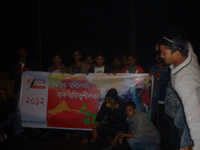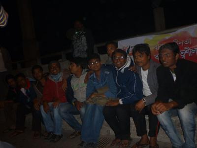 কর্মযজ্ঞ : স্থান ঠিক হল রুপসা ব্রিজ ।কুয়াশার কারনে পোস্টার আসতে একদিন দেরী হয় ।১৮ তারিখ রাতে হাতে পাই পোষ্টার ।১৯ তারিখ ভোর ৬ টায় শুরু হয় পোষ্টার মারা ।তীব্র শীত আর কুয়াশায় বেড়িয়ে পড়ি বাইক নিয়ে ।সঙ্গী মুসাফির রাজীব আর জমিদার ।খুলনা বিশ্ববিদ্যালয় গিয়ে শুরু হয় ক্যাচাল ।তাদের ভাবখানা দেখলে মনে হয় আমরা যেন হিজবুত তাহরীর পোষ্টার মারতে এসেছি এবং এটা কবিরা গুনাহ পর্যায়ের ঘোরতর অন্যায় একটা কাজ ।যাই হোক বুঝিয়ে শুনিয়ে রাজী করালাম ।পাবলিক বিশ্ববিদ্যালয়ের শিক্ষক শিক্ষার্থীদের কেবল অহংকার এবং অপরের প্রতি শ্রদ্ধাবোধ থাকলে এদের মতো দায়ত্বশীল মানুষ সমাজে আর পাওয়া যাবে না ।