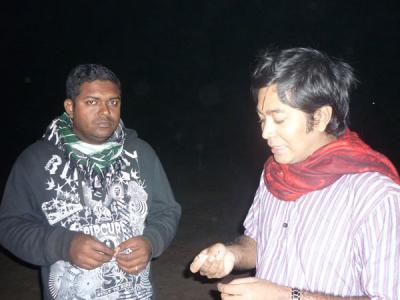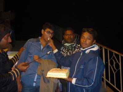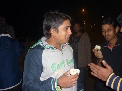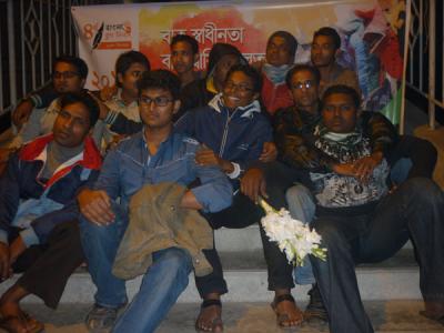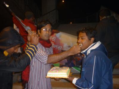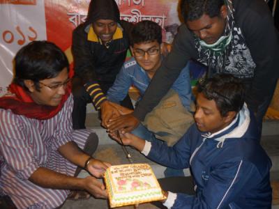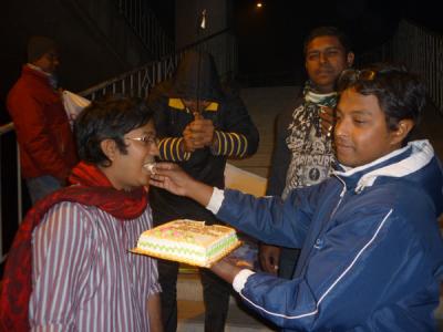 অনুষ্ঠান শুরু করার কথা ছিল বিকেল ৪ টায় ।আবারো মাংসের মধ্যে হাড্ডি হয়ে আসল কুয়াশা ।পরিবহনের গাড়ী লেইট যথাসময়ে ব্যানার হাতে না পাওয়ার কারনে কর্মসুচী কিছুটা পিছাতে হলো ।৩টা নাগাদ চলে আসলেন মুসাফির রাজীব,ব্রিগিডিয়ার আর মায়া ।ইতিমধ্যে ফোন করে আসার কথা বলেছেন টিনটিন ভাই আর ছোটভাই তুরাগ হাসান ।আমি এবং মুসাফির বিকেল ৫ পর্যন্ত এস এ পরিবহনে কিন্তু ততক্ষনেও গাড়ী এসে পেীছায় নি ।বাধ্য হয়ে ফিরে আসলাম ।ছোটভাই তুরাগকে একটু বেশী উত্তেজিত মনে হল সে বিকাল ৪ সময় রুপসা ব্রিজে গিয়ে হাজির ।সন্ধ্যা সাড়ে ৬টার দিকে আসলেন টিনটিন ভাই ।সারক্ষন ক্যাপ পড়া ছিলেন তবে আশংকা করছি তার মাথার চুল আনুপাতিক হারে সামান্য কম আছে ।ব্রিগেডিয়ারের বউয়ের হাত পুড়ে গেছে এই নিয়ে যতটা না চিন্তিত তার চেয়ে বেশী চিন্তিত ১৯ তারিখ হরতাল নিয়ে ।সারাক্ষন কেবল সিগারেটের মুখে আগুন জ্বালাতেই দেখলাম ।নিপাট ভদ্র ভালো ছেলেদের চেহারা ভাবলে চোখের সামনে যেমন একটা নাদুস নুদুস মুখ ভেসে ওঠে তুরাগ ছেলেটি ঠিক তেমনি ।আর মুসাফির তো পুরাই হার্টর্থব ।এমন স্মার্ট আর সুন্দর একটা ছেলে ঠোট লাল করে মাঝে মাঝে পান চিবাবে এই দৃশ্য আমার কাছে সহ্য করার মতো না ।যাইহোক অনেক ত্যানা পেচানো হইল যেটা আদতে বিশ্বব্যাংকের কাজ ।সব গোছগাছ করে সিদ্ধান্ত নিলাম সন্ধা ৭ টায় শুরু করব অনুষ্ঠান ।টিনটিন ভাই হটাত ঘোষনা করলেন তার জরুরী বাড়ী যেতে হবে।মামাকে নিয়ে ডাক্তারের কাছে যেতে হবে ।প্রচুর পরিমানে মিষ্টি কিনে দিয়ে তিনি দায়িত্ব শেষ করে বাড়ী ফিরে গেলেন ।সাড়ে ৭ টার দিকে শুরু হল অনুষ্ঠান ।কেক,মোগলাই,কোক,মিষ্টি,সামুচা খাওয়ার ফাকে ফাকে আড্ডা আলোচনায় ব্রিজ গরম করে ফেললাম ।রাত সাড়ে ৯টায় একবুক আপসুস নিয়ে বাড়ীর পথ ধরলাম ।ঈশ কেন যে একটু আগে থেকে আয়োজন টা করতে পারলাম না ।তাহলে হয়ত আরো ভাল হতো ।