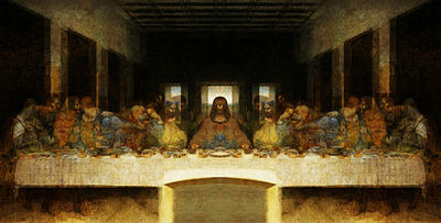 Leonardo da Vinci's The Last Supper superimposed with its mirror image