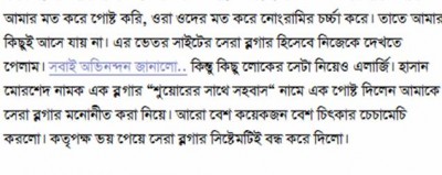 ত্রিভুজের দাবী হাসান মোরশেদ 'শুয়োরের সাথে সহবাস' পোষ্টখানা ছুঁড়েছিল তাঁর শ্রেষ্ঠ ব্লগার হবার প্রতিক্রিয়ায়!