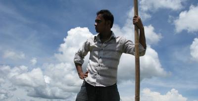 তারা আমার ছবি তুলছে বুঝতে পেরে আমি একটা গাছ থেকে ডালা (যদিও দেখতে বাঁশের মতো) ভেঙ্গে লাঠি বানিয়ে পার্ট মেরে দাঁড়ানোর চেষ্টা করলাম।