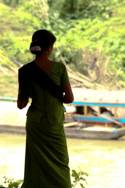 কিন্তু এসব দেখতে দেখতেই শুরু হয়ে গেল ঝুম বৃষ্টি। ক্যামেরাটা বাঁচানোর জন্যই দ্রুত ঢুকে পড়লাম একটা দোকানে। কিন্তু এভাবে কতক্ষন? বৃষ্টি কমার কোন লক্ষনই দেখা গেল না। শেষে রেইনকোটে ক্যামেরার ব্যাগটা জড়িয়ে বৃষ্টিভিজে কোন ভাবে ফিরলাম নৌকায়। কিন্তু আমাদের মাঝি তার নৌকা নিয়ে আর সামনের দিকে এগুতে রাজি না। মাঝির মতে এখন সামনের দিকে পানি কম, নৌকার প্রপেলর নদীর নীচে লেগে ভেঙে যেতে পারে। সুতরাং আমরা ছোট নৌকার খোঁজ শুরু করলাম। কিন্তু এই বৃষ্টিতে কিছুই পাওয়া যাচ্ছিলো না। তাই অপেক্ষা করে থাকতে হলো বৃষ্টি থামার। সকালের নাস্তাটা সেরে নিলাম এর ফাকে ফারুয়া বাজারে। দুপুরের দিকে বৃষ্টি খানিকটা কমে এলে আমরা একটা ছোট নৌকা রাজি করাতে পারলাম। যখন ছোট নৌকার জন্য খোজাখুজি চলছে তার মধ্যেই আমরা ঘুরে এলাম ফারুয়া বাজারের ওপারের বৌদ্ধ মন্দির থেকে। বাজারটাও ঘুরলাম আরও খানিকটা।