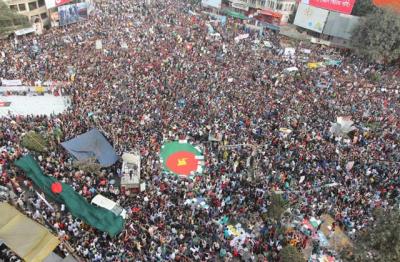 বাসটা যখন শাহবাগের খানিকটা আগে অন্যমোড় নিলো, যাত্রীরা নামতে শুরু করলে দেখতে পেলাম বাসে বসে থাকা প্রায় সবাই নেমে পড়েছে সেখানে। সবার বুকের আগুন খানিকটা টের পেলাম তখনই। রাস্তার বাস গাড়িগুলো সরাসরি উপেক্ষা করে একসাথে সবাই ব্যরিকেড পেরিয়ে ঢুকে পড়লো শাহবাগে, যুদ্ধে।
