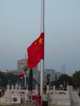 চীনের রেড আর্মিরা পতাকা নামাচ্ছে সুর্যাস্তের সময় তিয়েনআনমেন স্কয়ারে।আবার পরদিন সুর্যোদয়ের সময় ফরবিডেন সিটি থেকে রাস্তা পেরিয়ে এসে পতাকা উড়িয়ে যাবে।প্রতিদিনের এই আনুস্ঠানিকতা দেখার জন্য প্রচুর ট্যুরিস্ট এবং চাইনীজরা বিকাল থেকেই অপেক্ষা করে সূর্যাস্তের।