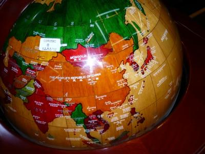 জেডের তৈরী গ্লোবের মধ্যে চীনের মানচিত্র