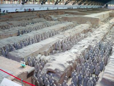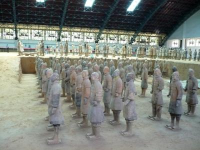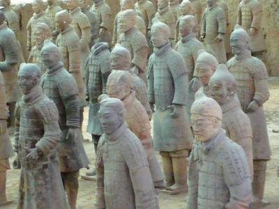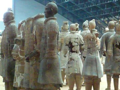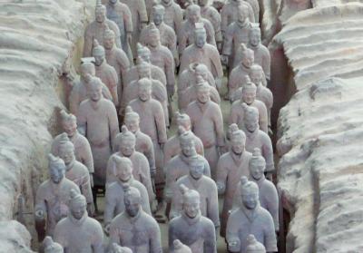 চীনের প্রথম সম্রাট শিন শি হুয়ান এর মৃত্যুর পর ( খৃঃ পুঃ ২০৯-২১০) তার সমাধি সৌধের সামনে মাটির তৈরী এই সৈন্য এবং ঘোড়ায় টানা রথগুলো তৈরী করে কবর দেয়া হয়েছিল। যাতে মৃত্যু পরবর্তী জীবনে রাজার জীবন রক্ষনাবেক্ষন করতে পারে !!