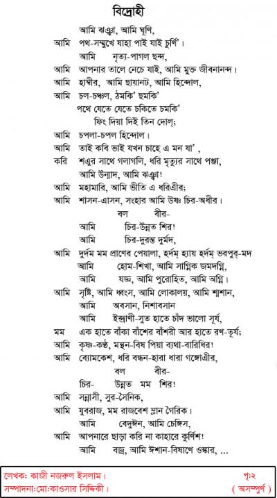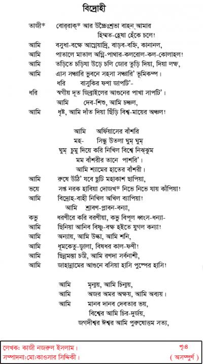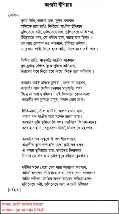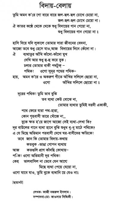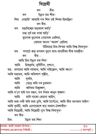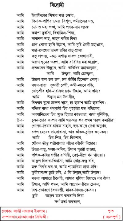 কাজী নজরুল ইসলাম এর ১০ টি কবিতা ।