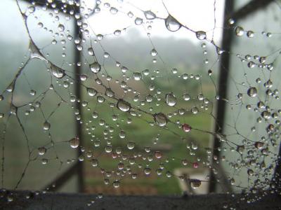এটা আমার খুবই প্রিয় একটা ছবি। ছবিটার সুন্দর একটা নাম আছে। ভুলে গেছি। নতুন হলের জানালায় মাকড়সার জালে বৃষ্টির ফোঁটা। (ছবি- অনুপ বাড়ৈ)