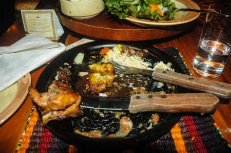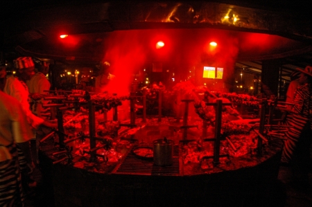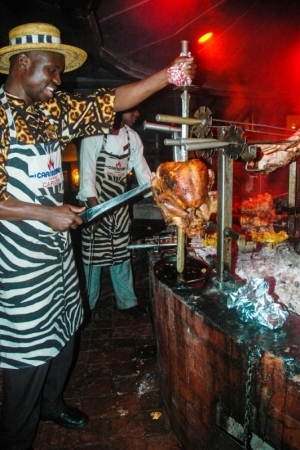 জেব্রা প্রিন্ট এর পোশাক পরে পরিবেশনকারী রা ঘুরে বেড়াচ্ছে কখন কোথায় কার প্লেট ফাঁকা তা দেখার জন্য আর ফাঁকা দেখলেই ভর্তি করে দিচ্ছে মাংস দিয়ে একরকম জোর করেই।