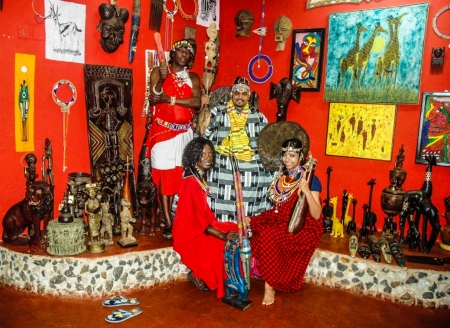 ভরপেট খেয়ে বাইরে বেরোতেই চোখে পড়ল একটু সুভ্যেনির শপ এর। অল্প টাকার বিনিময়ে এখানে মাসাই রাজার পোশাক পরে ছবি তোলা যায়। তো দেখে নিন নতুন মাসাইরাজকে সভাসদ সহ -