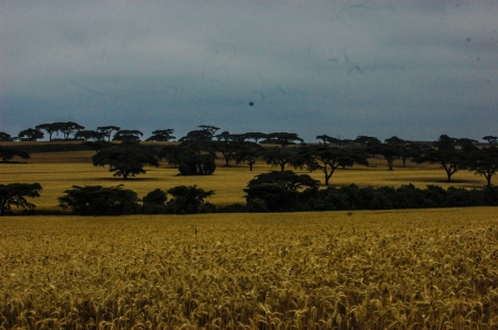 বেশ কিছু দূর যাওয়ার পর চোখে পড়ল বিশাল গম-ক্ষেত যার মাঝে মাঝে রয়েছে আফ্রিকান অ্যাকাসিয়া গাছের সারি।