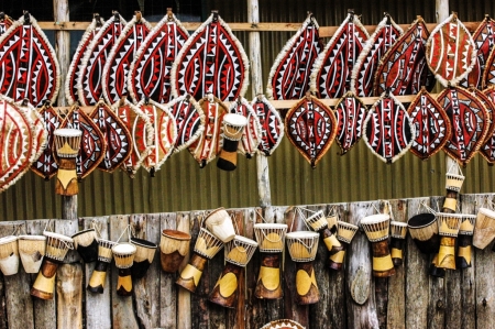 প্রথম যাত্রাবিরতি হল একটা স্যুভেনির শপে। প্রথমেই চোখ চলে যায় দোকানের বাইরে সাজিয়ে রাখা মাসাই ঢাল আর ঢাকের দিকে। তাছাড়াও রয়েছে মাসাই বল্লম আর প্রচুর পরিমাণে বিভিন্ন ধরণের বন্যপ্রাণীর মূর্তি।