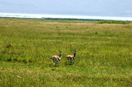 লড়াই শেষে পরাজিত গ্যাজেল রণে ভঙ্গ দিলেও বিজয়ী গ্যাজেলের রোষায়িত তাড়া করার দৃশ্য