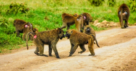 দুই অলিভ বেবুন যখন ঝগড়ায় মত্ত