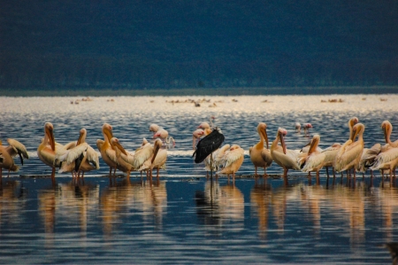 আস্তে আস্তে চলে আসলাম লেকের পাড়ে। আগেই বলেছি সেই আগের মত ফ্ল্যামিঙ্গোর আর উপস্থিতি নেই পুরো লেক জুড়ে। তবে যারা আছে তাদের সাথে রয়ে গেছে কিছু পেলিক্যান (গ্রেট হোয়াইট পেলিক্যান) আর অন্যান্য পানিতে থাকা পাখী। এরকম কোন ছবি দেখেই কি পণ্ডিতরা বানিয়েছিলেন বাগধারা - হংস মধ্যে বক যথা ! !