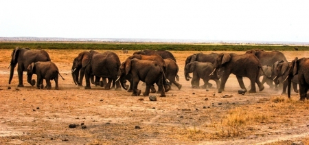 সময় প্রায় দুপুর, গোসলের সময়। একপাল হাতি তাই ধুলো উড়াতে উড়াতে চলে যাচ্ছে জলাভূমির দিকে