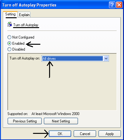 7. Settings এর ভিতর থেকে ‘Enabled‘ ক্লিক করে OK করুন।